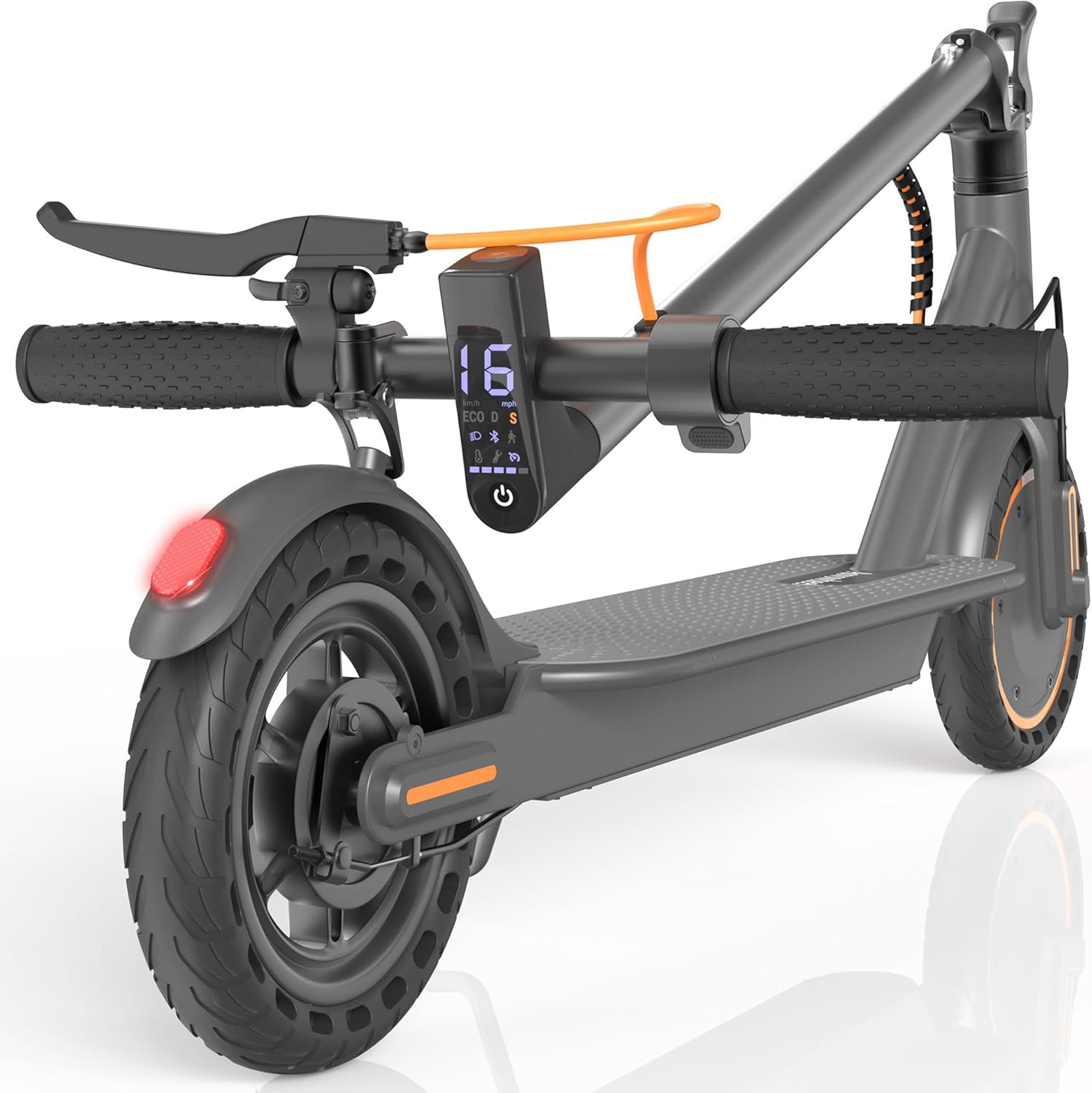 Testing showed the dual hydraulic suspension smooths out rough roads incredibly well, making long urban rides feel far less tiring. You will find the 11 inch self-sealing tires helpful if your commute takes you through debris-prone paths or uneven pavement.