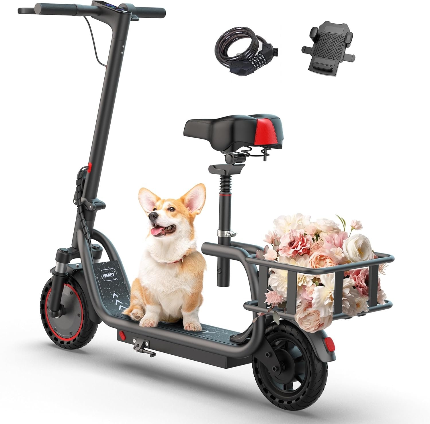 - Best for Everyday Comfort: WERHY Electric Scooter with Seat & Basket